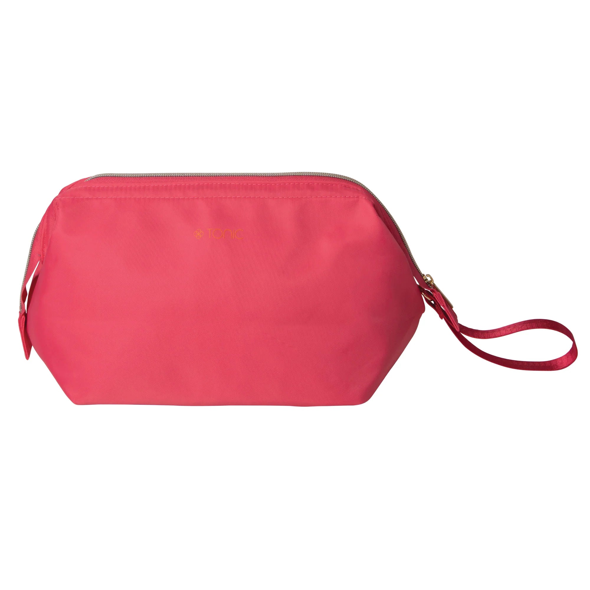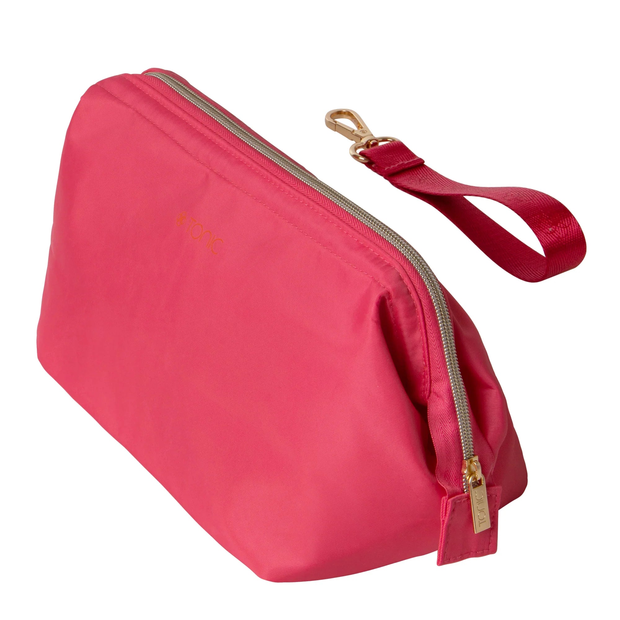 It's simple to keep this makeup bag close at hand while at home or while travelling with the detachable wrist strap in shiny webbing printed with the Tonic logo.