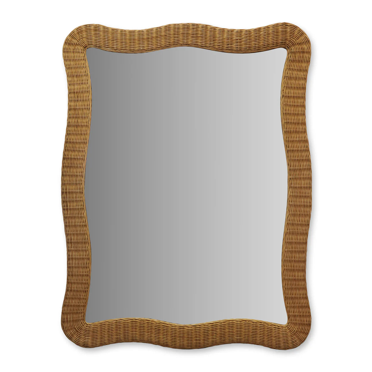 Handwoven rattan wavy mirror stained in natural honey colour.