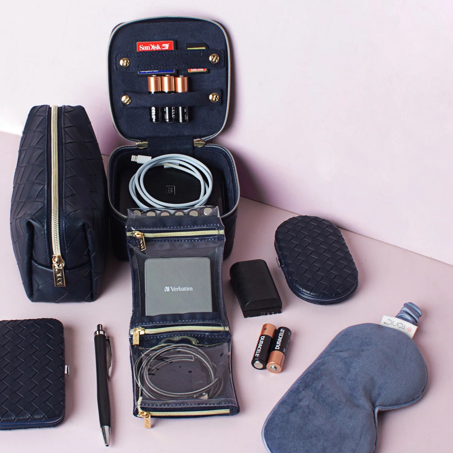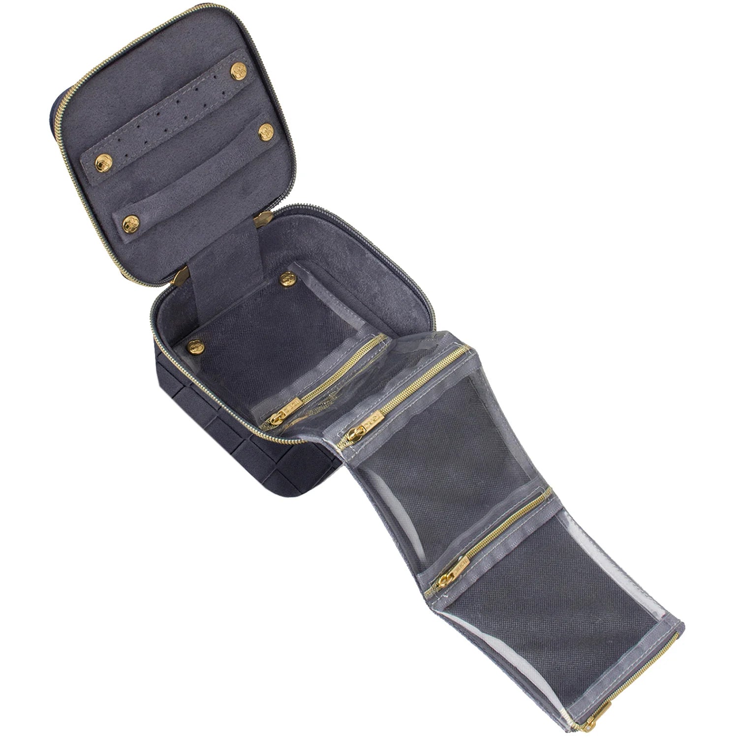 Made with a luxurious woven-look material, this Jewellery Cube is a patented design that keeps your cherished pieces safe and free from damage. Luxurious gold zips open to 4 individual zip compartments in a removable concertina design, a ring holder, and earring holder. Protect your precious pieces from tangles, scratches, dints, knots, and loss; and place them where you can see them while you accessorise your outfit, storing at home, or while travelling. Tonic Jewellery Cubes are designed in Australia with care, quality, and thought.