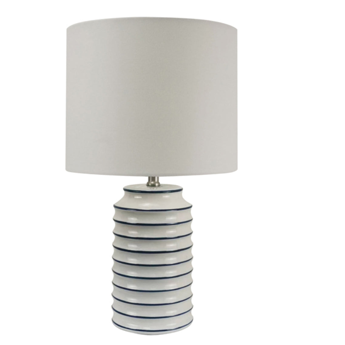Coast Ceramic White Blue Ribbed Lamp (incl white shade)