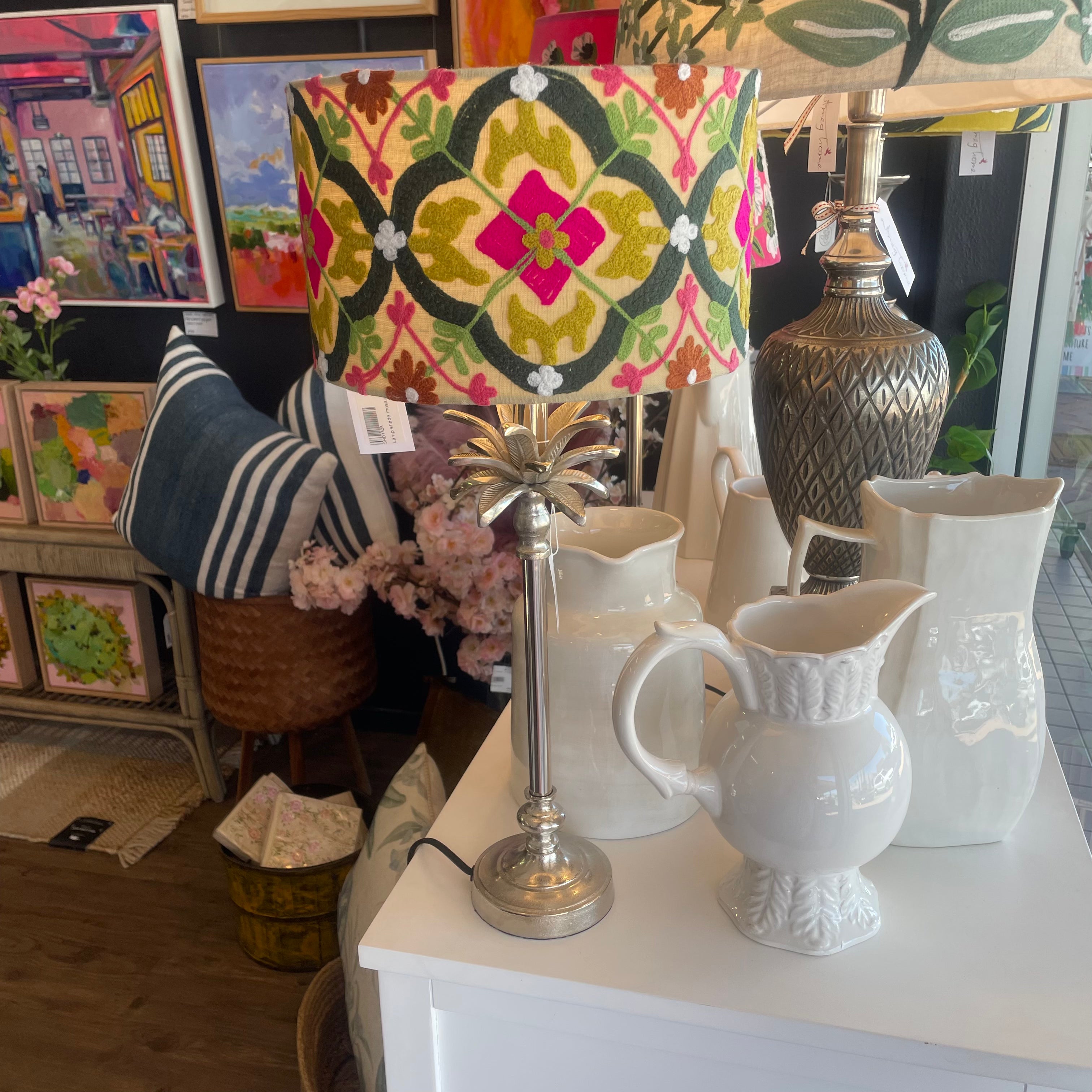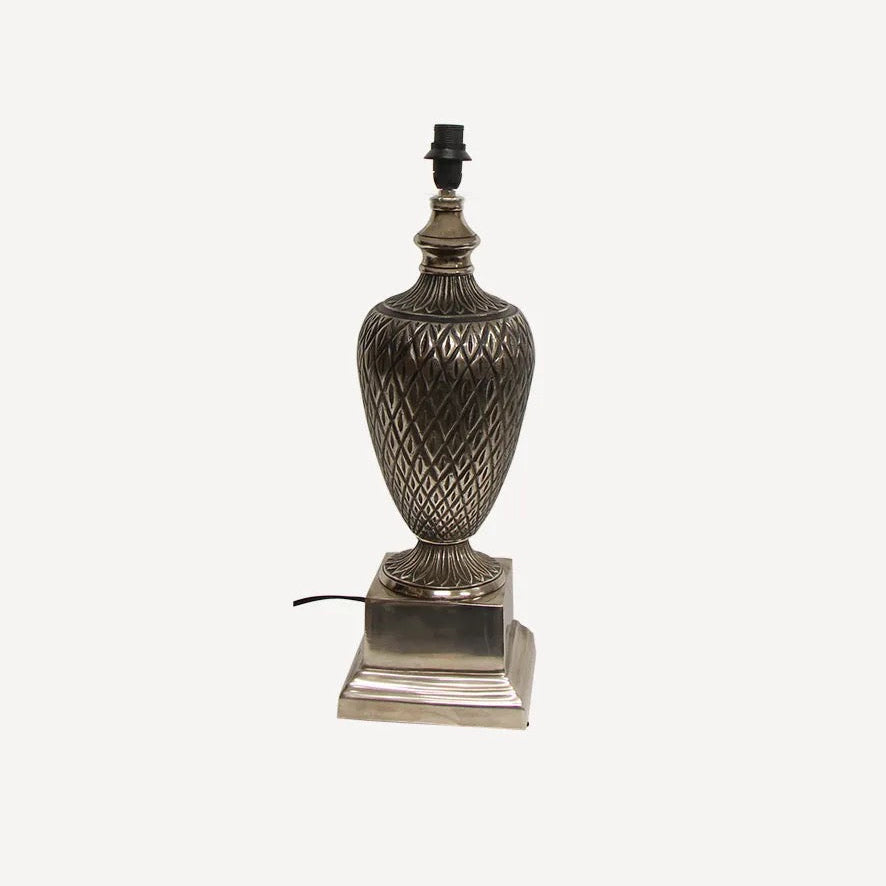 Classic metal and brass lamp base with etched detailing, perfect for spicing up a side table or as a glamourous pair on a console.