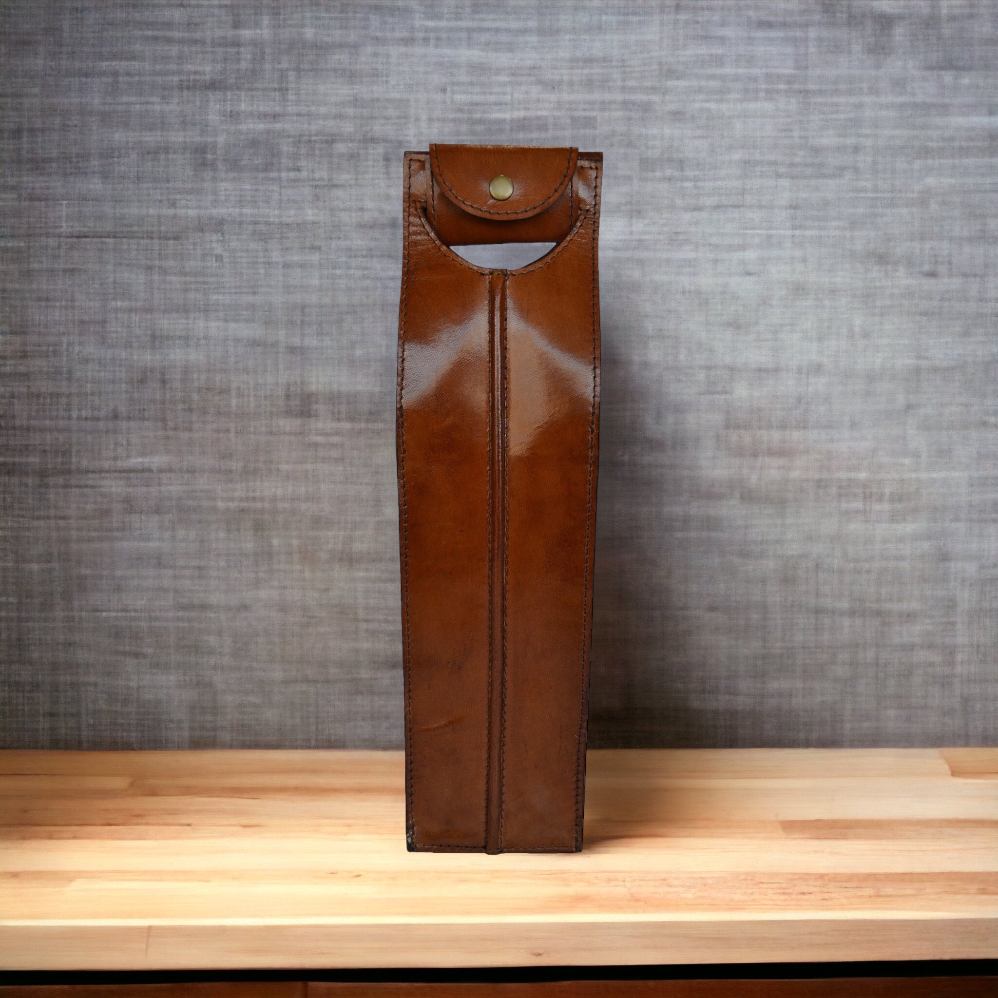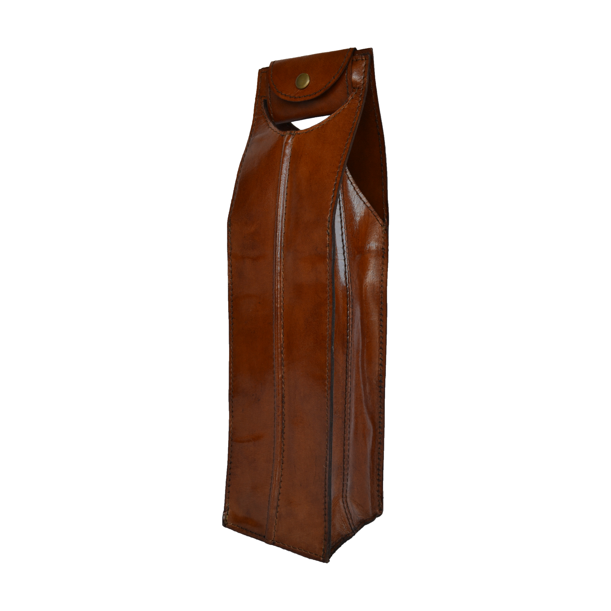 Single Wine Holder in a Tan colour with ostentatious, polished texture of leather and a firm base. The handle of this wine holder has a rather classy and vivid touch to customise corporate gifts it.