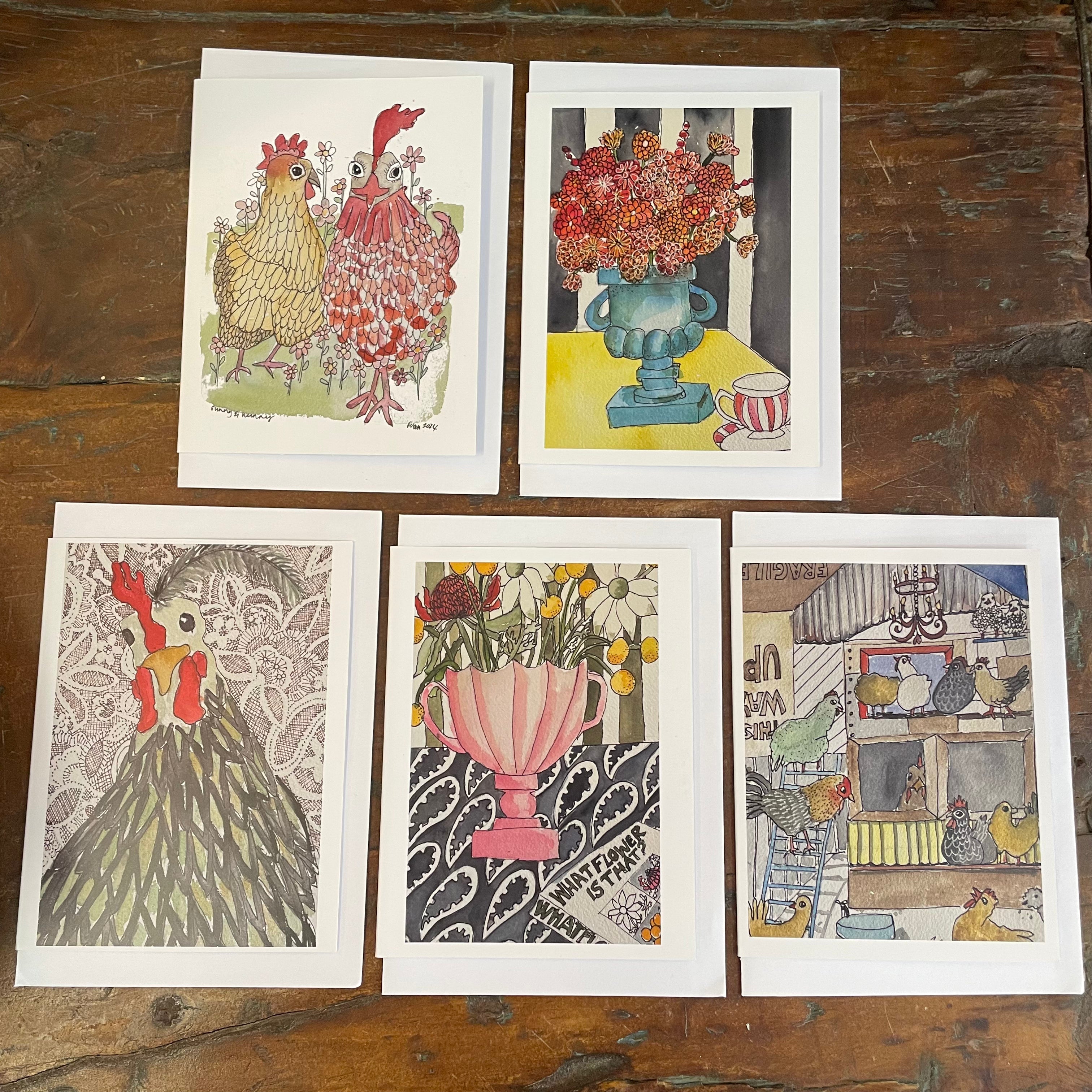Robyn Beeston Chooks & Flowers Cards Pk 4