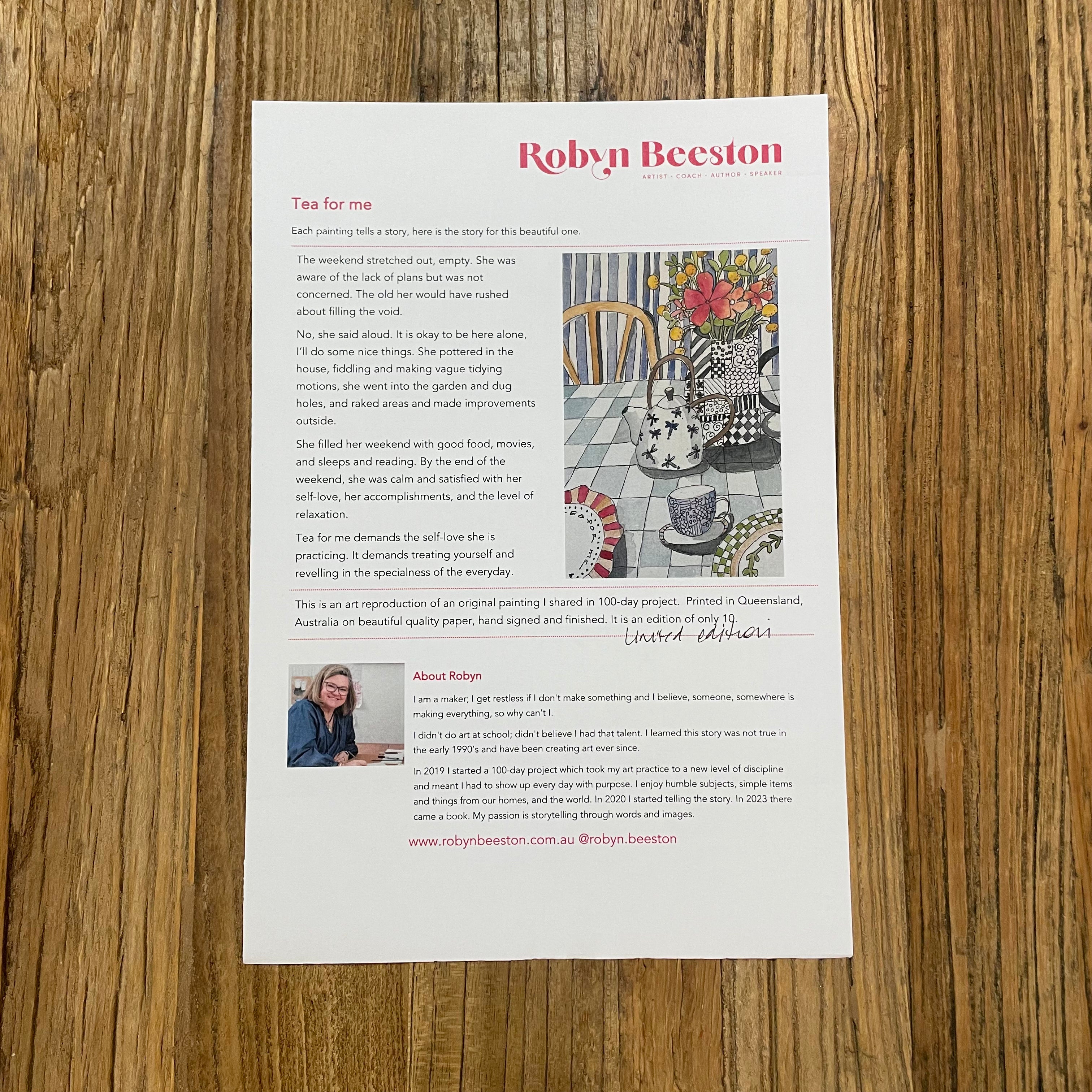 'Tea for me' A4 Limited Edition Print | Robyn Beeston