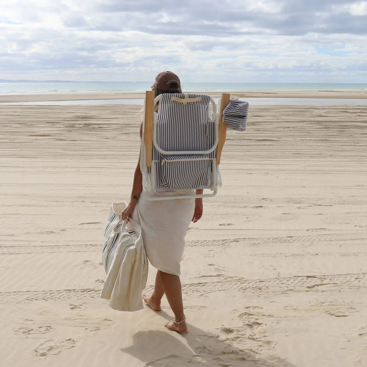 DELUXE BEACH CHAIR - RESORT COASTAL NAVY STRIPE