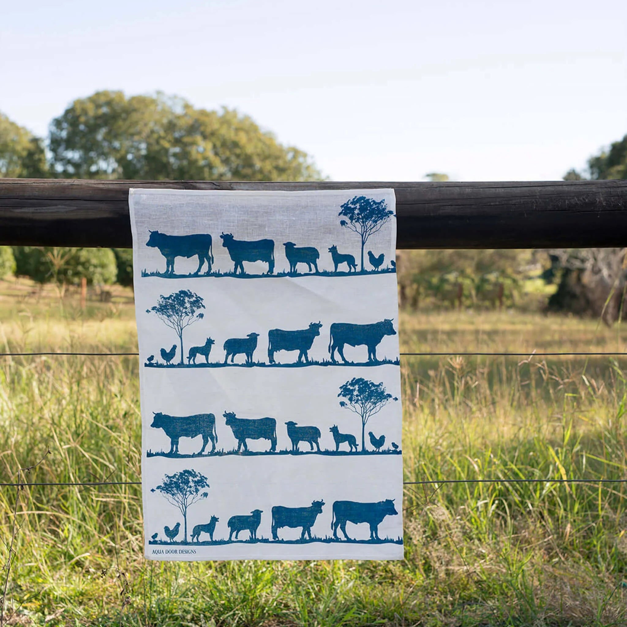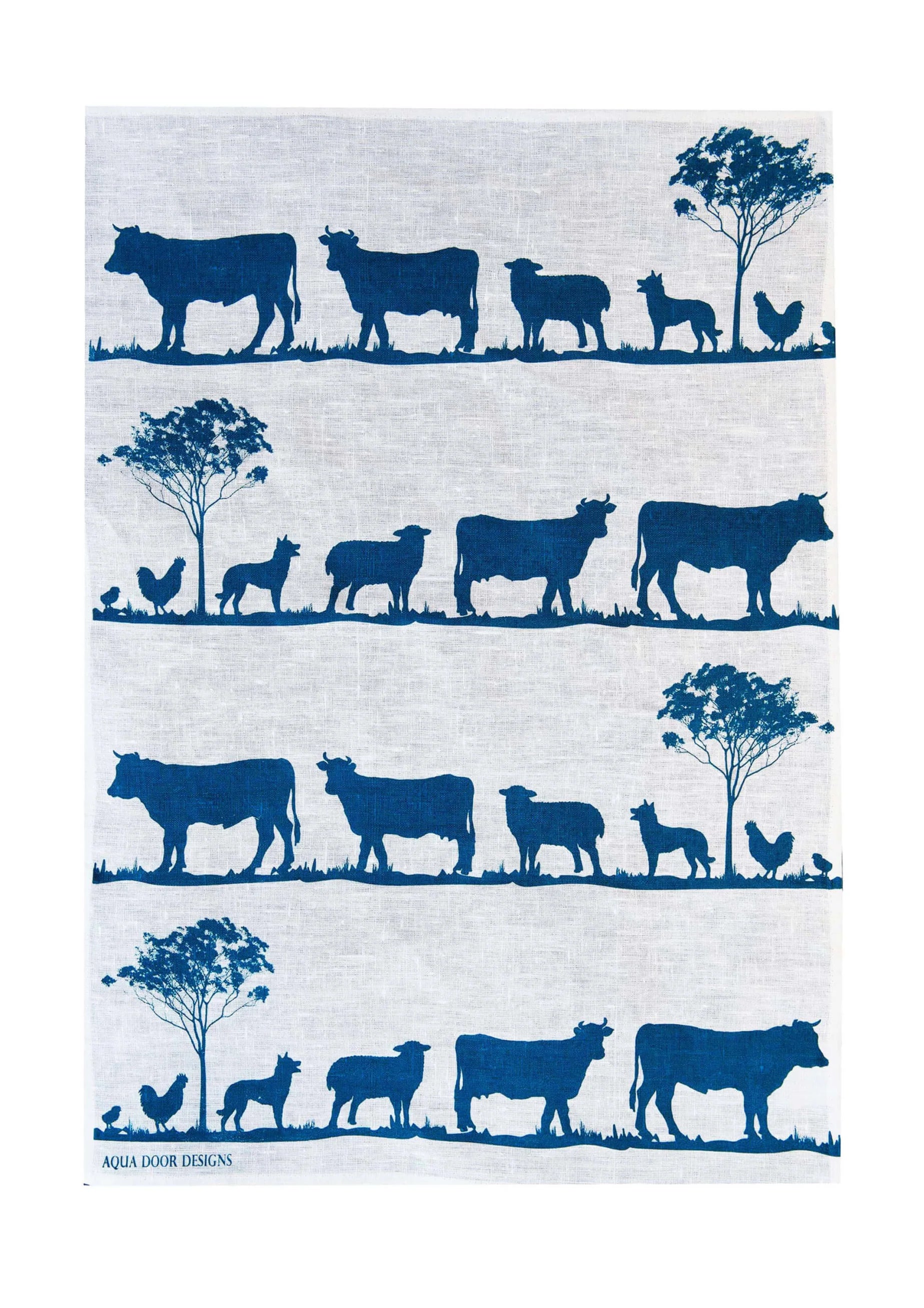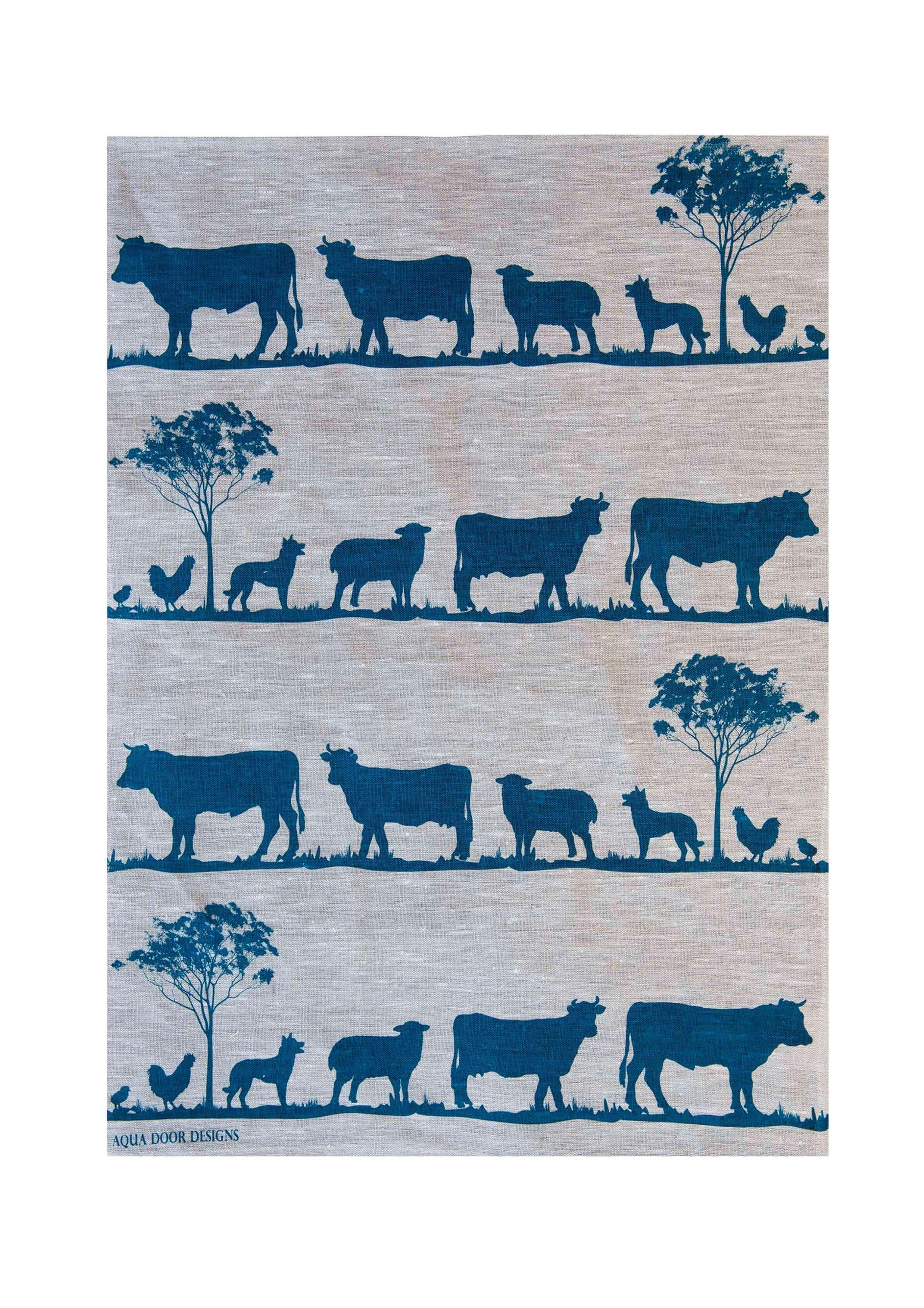 Aquadoor Linen Tea Towel | 'Paddock' Navy