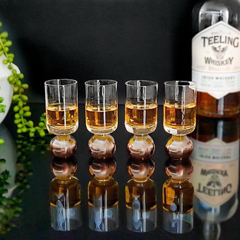 Our shot glass set of 4 has been designed in house by the CLINQ team. Hand-blown and made from lead-free glass, these stunning shot glasses can be used for any tipple served straight. The copper detail on the ball base creates a unique design that won’t go unnoticed.