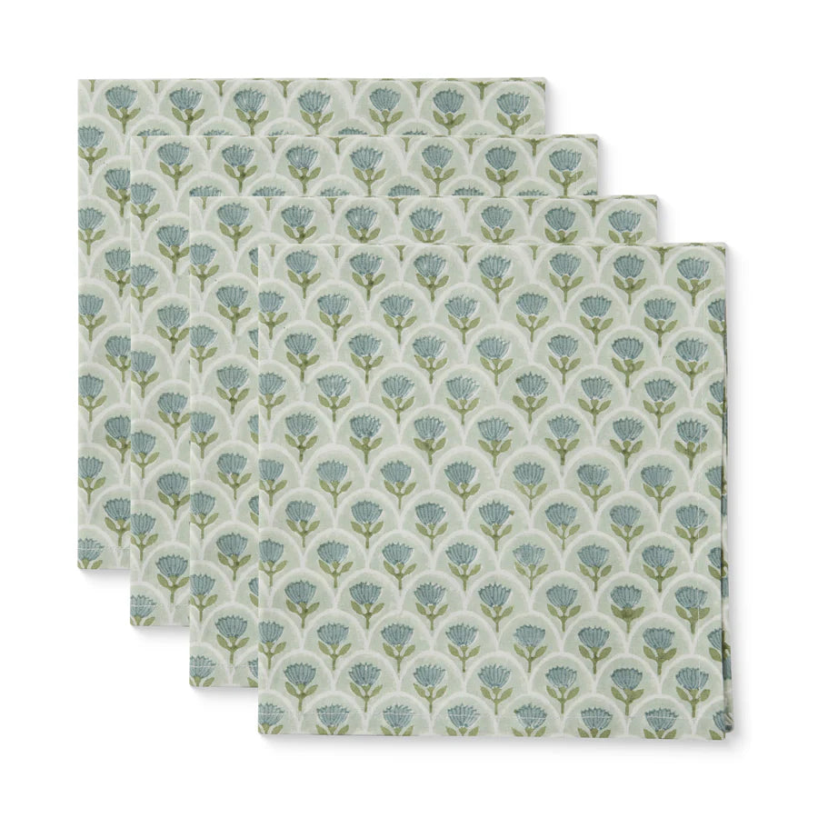 Suri scallop buti seafoam block print Napkin set 4