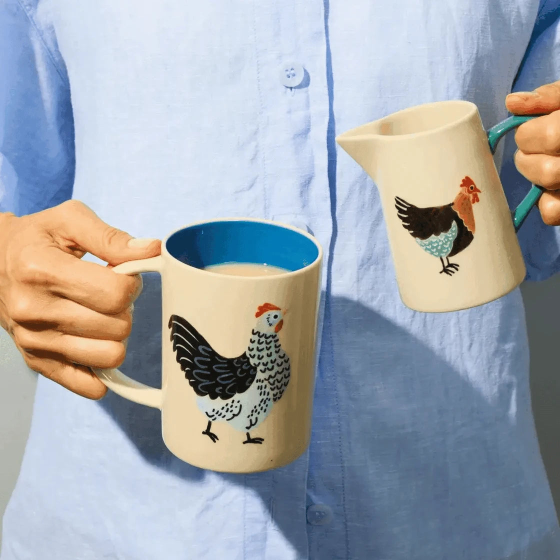 Adorned with a hand-painted rooster in earthy hues, this earthenware milk jug features a distinctive green handle for character and function. Our Sydney-designed Clover Milk Jug transforms everyday pouring into an occasion, each piece individually painted by Vietnamese artisans who honour their craft heritage.